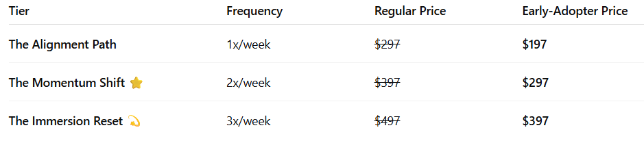 I am so excited to launch this coaching program, and I want to work closely with a small group of early clients. These first five people will get a special early-adopter discount, not because the work is any less powerful, but because I want to fine-tune the process and ensure each client has an incredible experience.